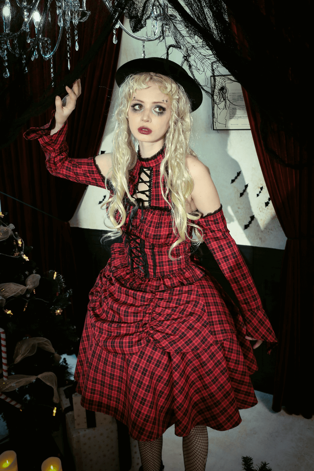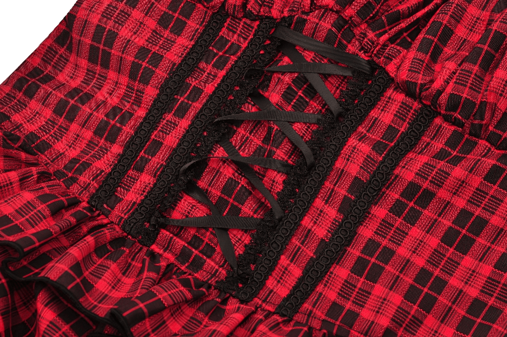 Red Plaid Gothic Corset Dress with Ruffle Details