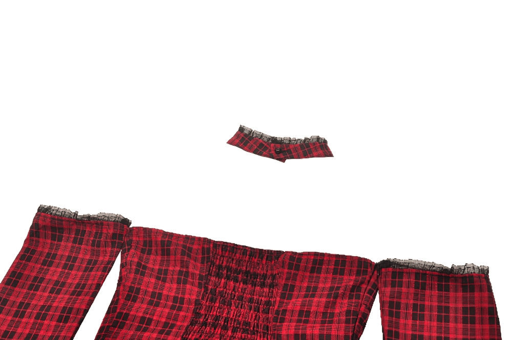 Elevate your gothic style with this stunning red plaid corset dress. Featuring a lace-up front, off-shoulder sleeves, and layered ruffle details, this dress embodies Victorian charm with a modern edge. The halter neckline and fitted waist enhance your silhouette, while the flowing skirt adds elegance. Perfect for gothic events, cosplay, or adding a statement to your wardrobe.