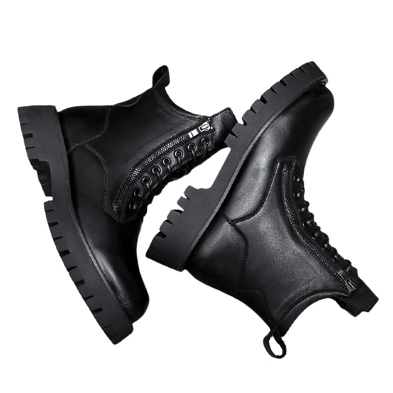 Pay attention to this stylish model of men's shoes in rock style. These black boots are made of genuine leather and have laces for your relaxed wearing, and they also have a flexible sole in which you will definitely be comfortable. So choose your size and order these black shoes.