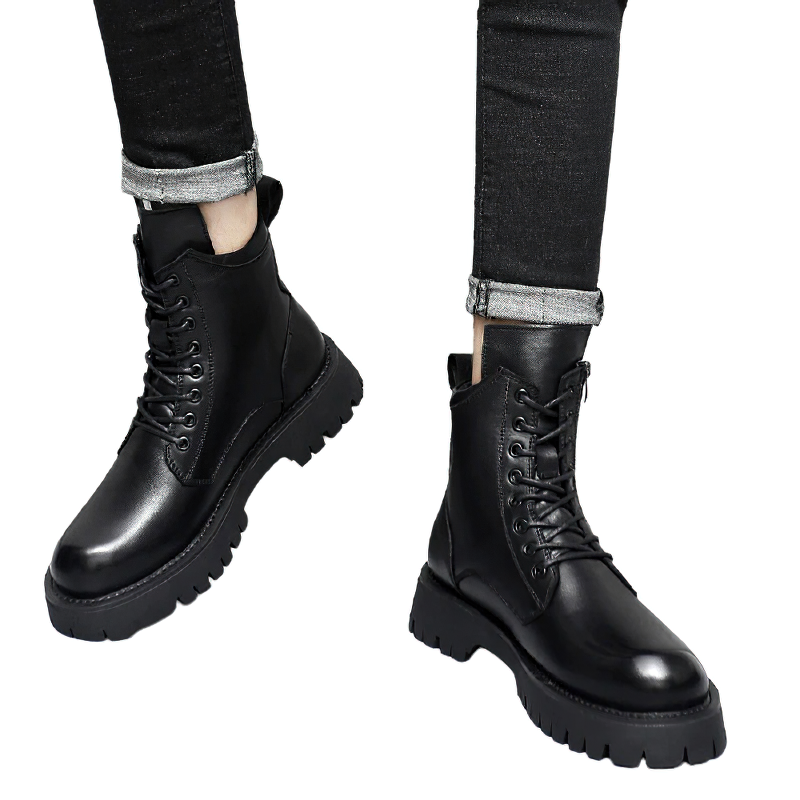 MEN'S BLACK LEATHER BOOTS - ROCK STYLE SHOES.