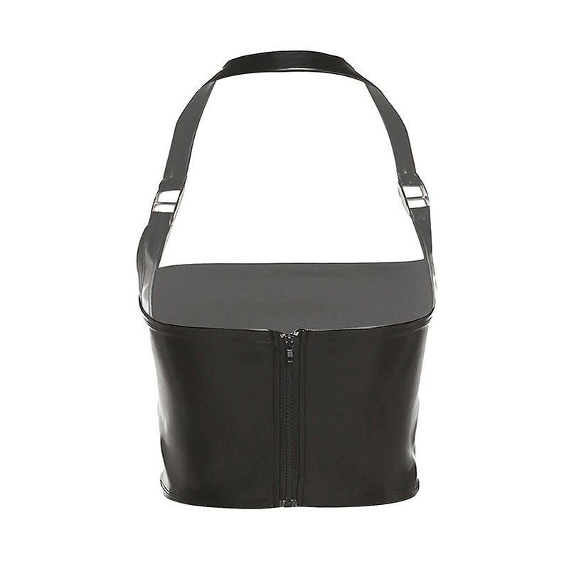 Sexy Black Cropped Tank Top with Buckles / Halter Short Top / Women's Apparel in Rock Style