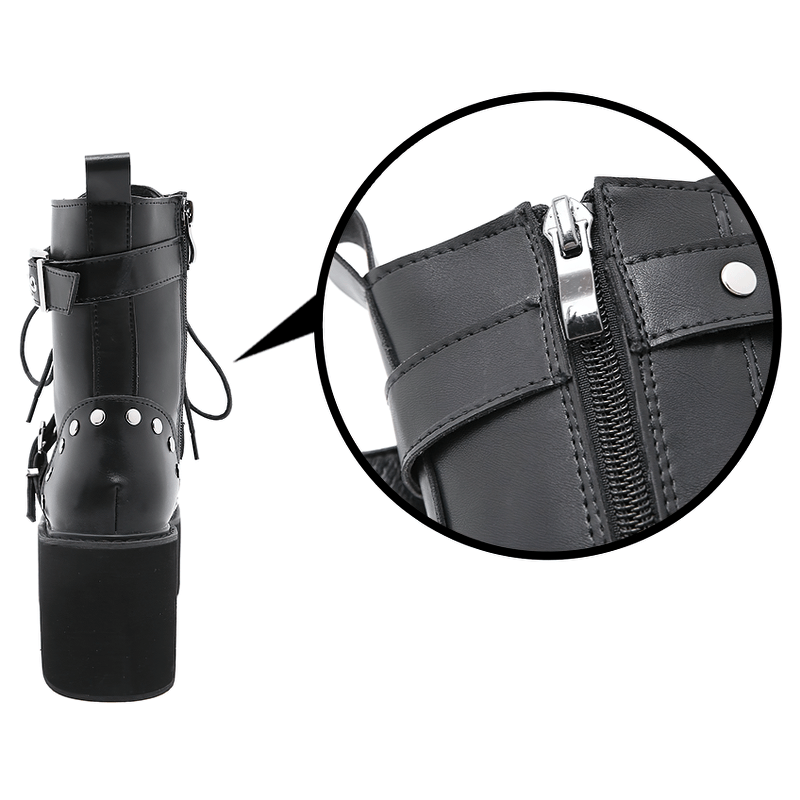 Black PU Leather Women's Combat Boots - Steampunk Fashion.