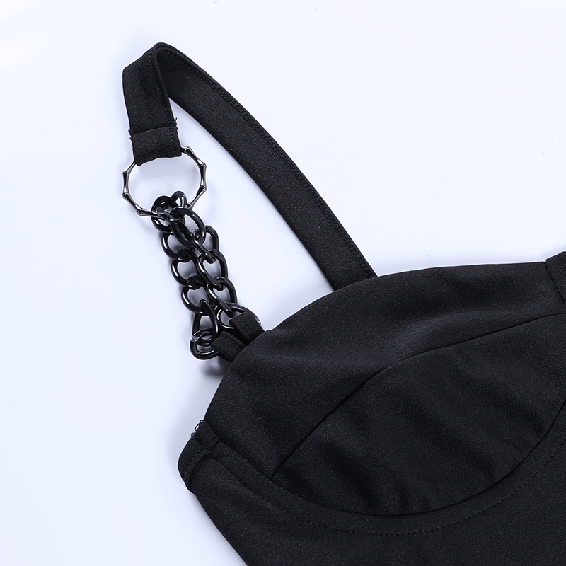 Sexy Women's Grunge Crop Top / Gothic Style Sleeveless Corset Chain Top