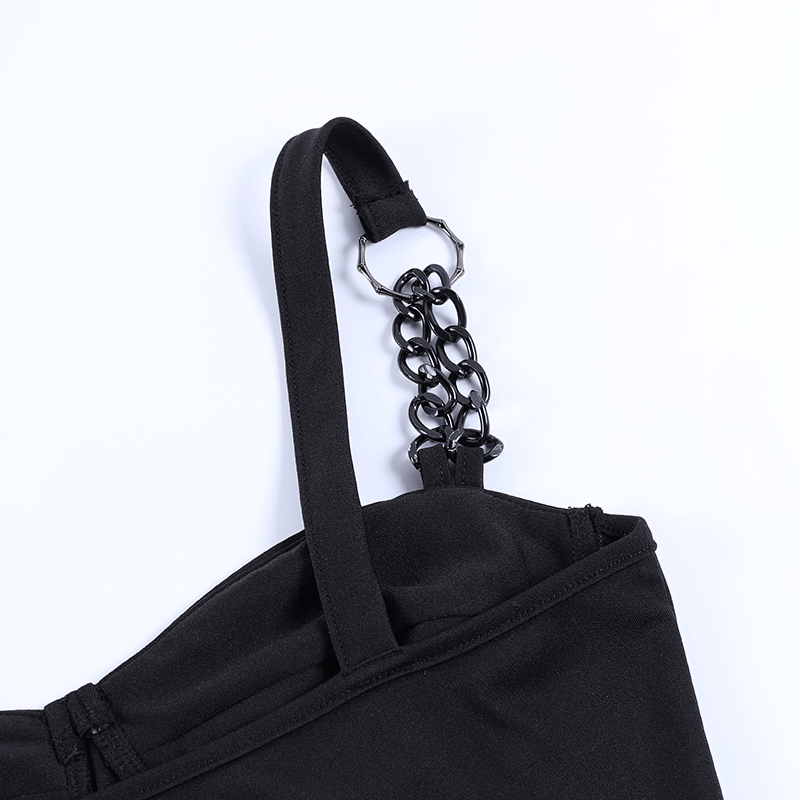 This gorgeous crop top has amazing support and is very comfortable. It's solid, decorated with straps and chains and is breathable, too. Pair it up with other gothic fashion-inspired items and some accessories.